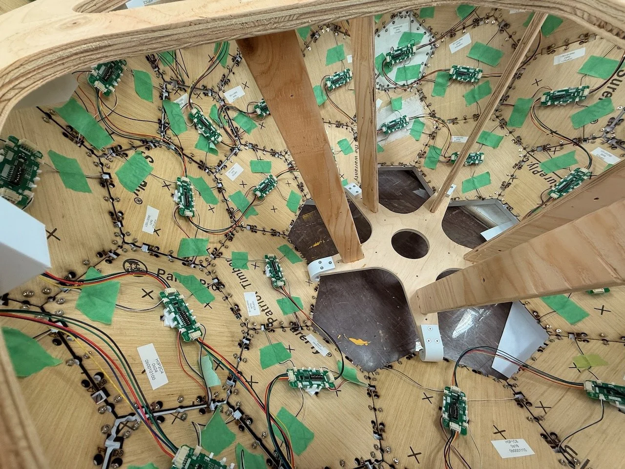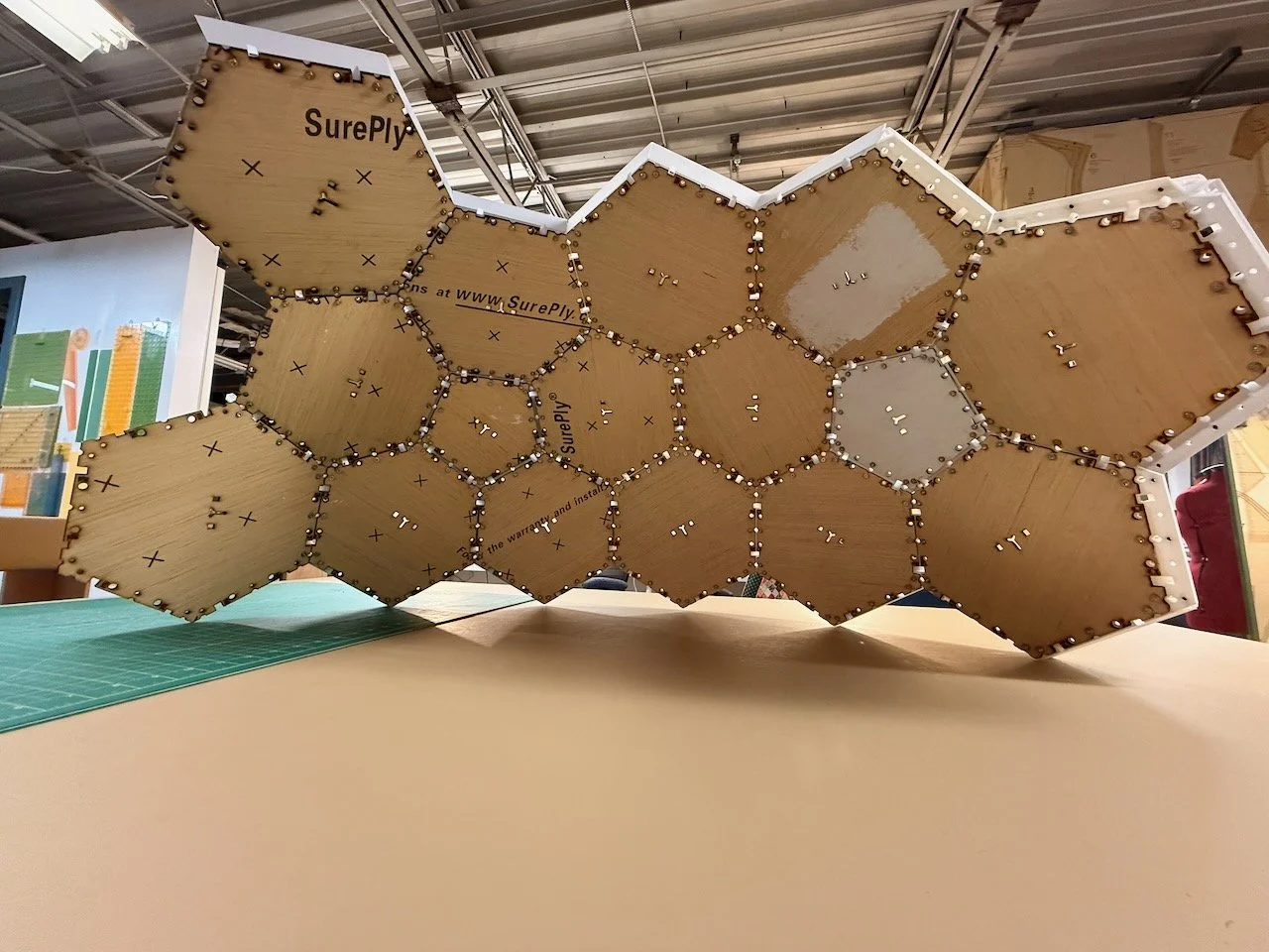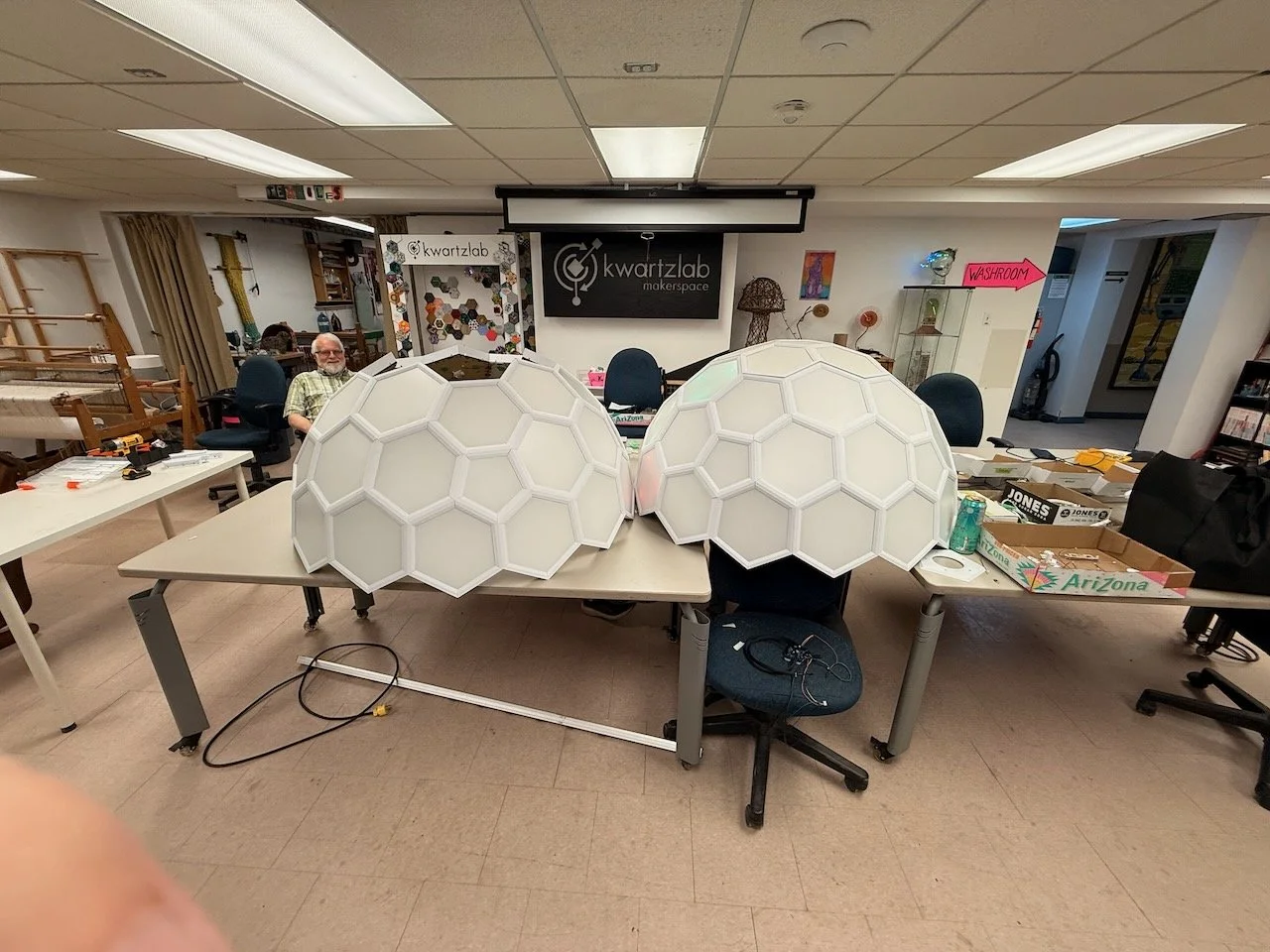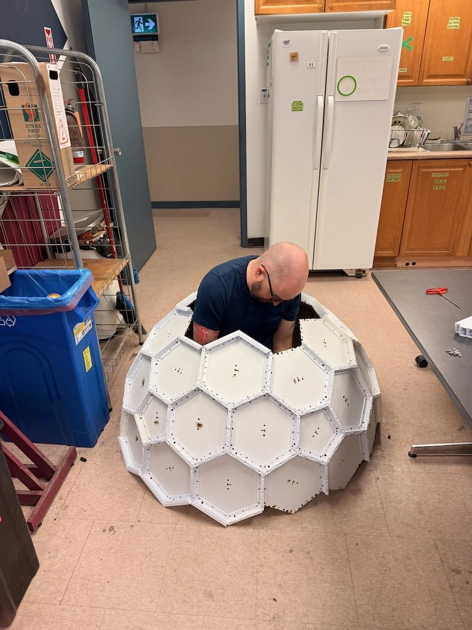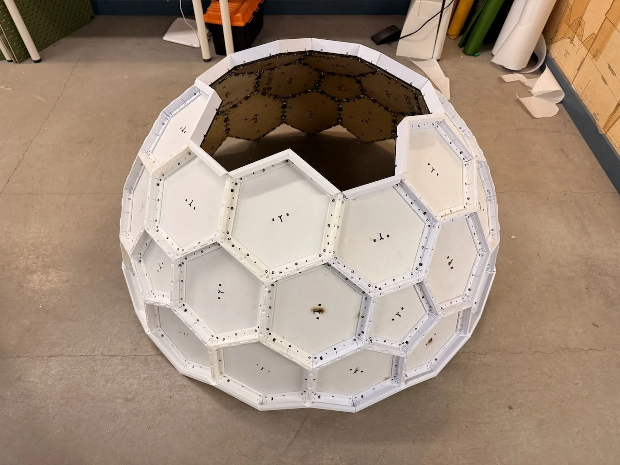 Here’s a short video of the moon under construction. We assemble the moon in panels of 8 cells. There are 10 total panels on the whole moon plus two additional panels on the top and bottom.