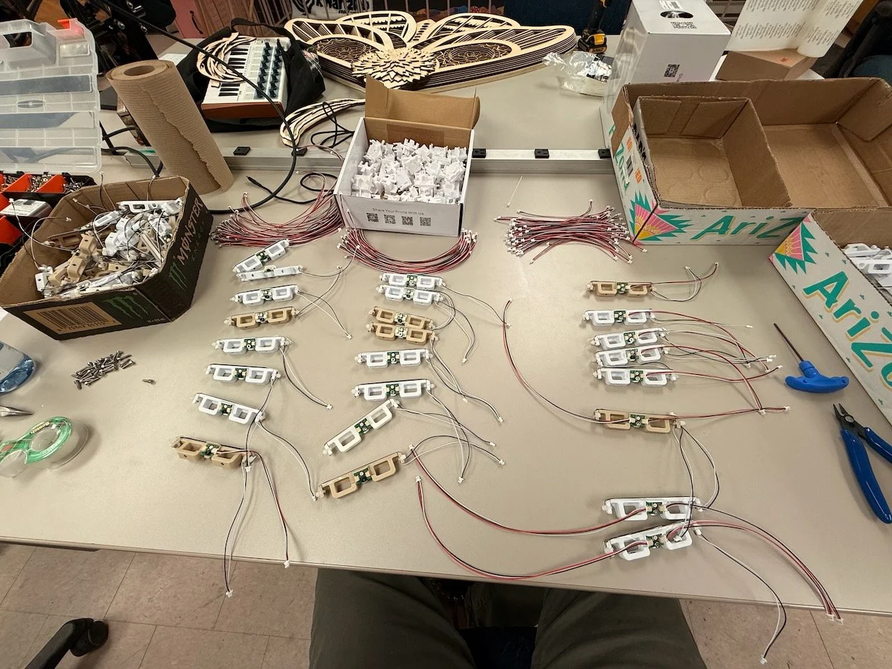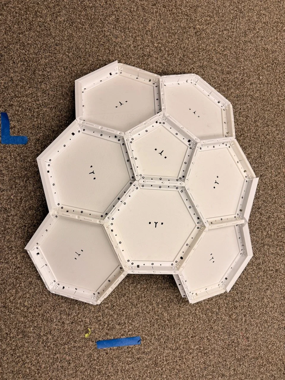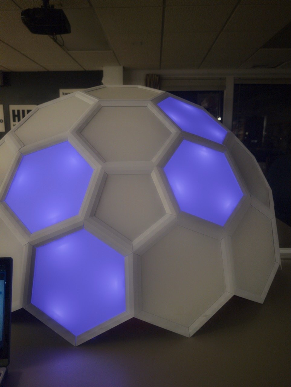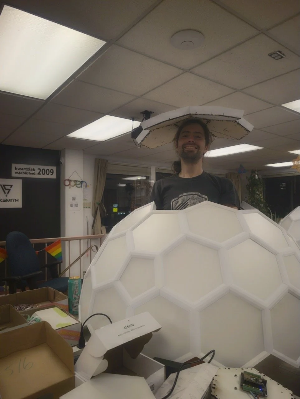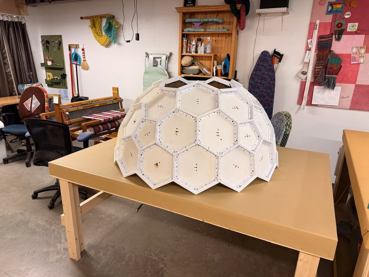 Here’s a short video of the moon under construction. We assemble the moon in panels of 8 cells. There are 10 total panels on the whole moon plus two additional panels on the top and bottom.