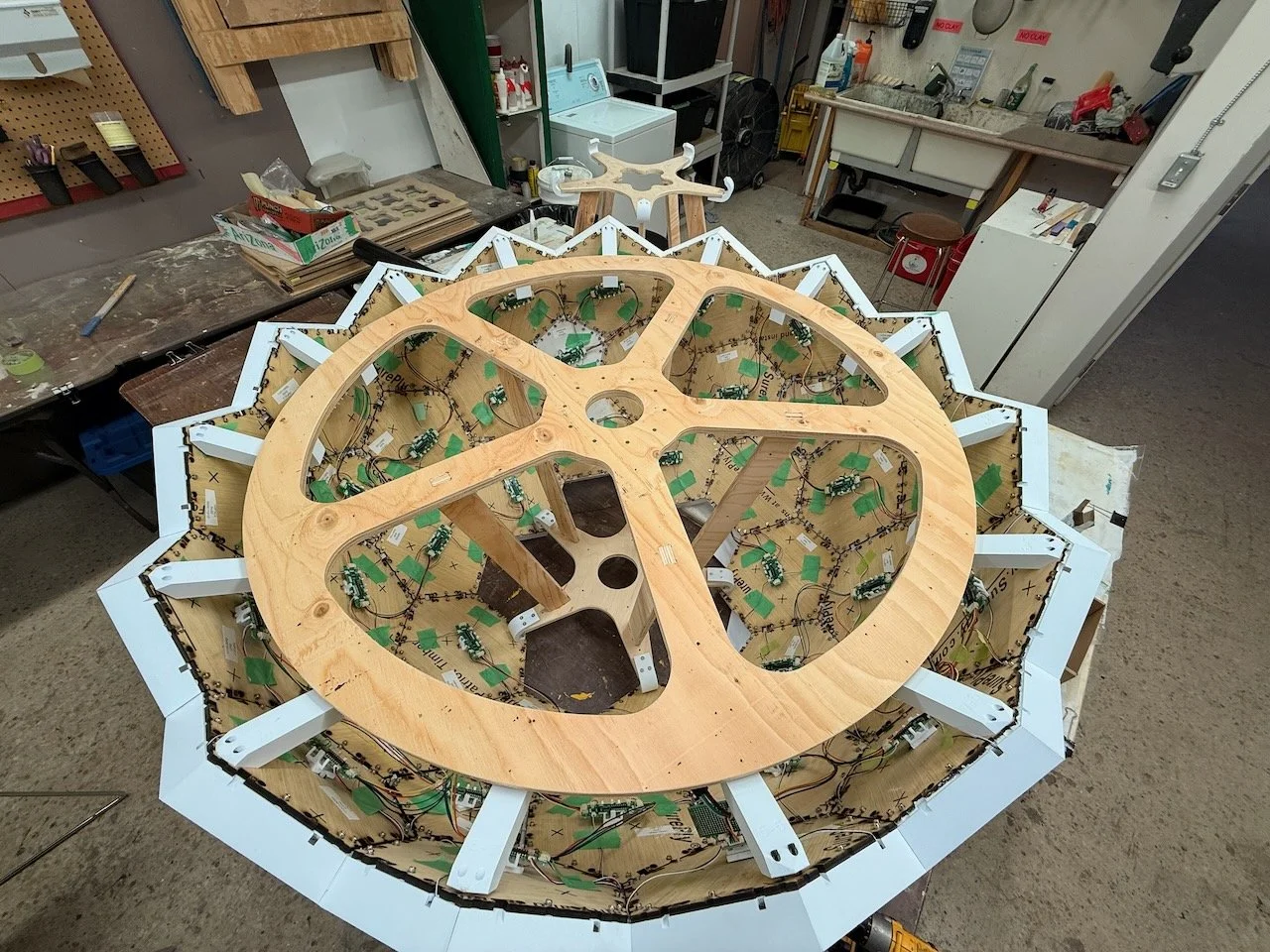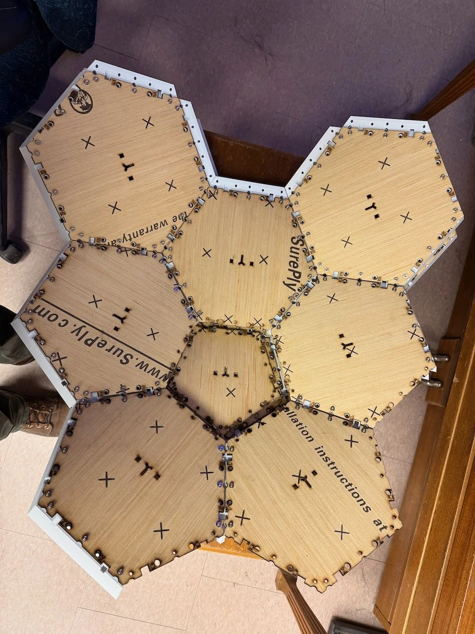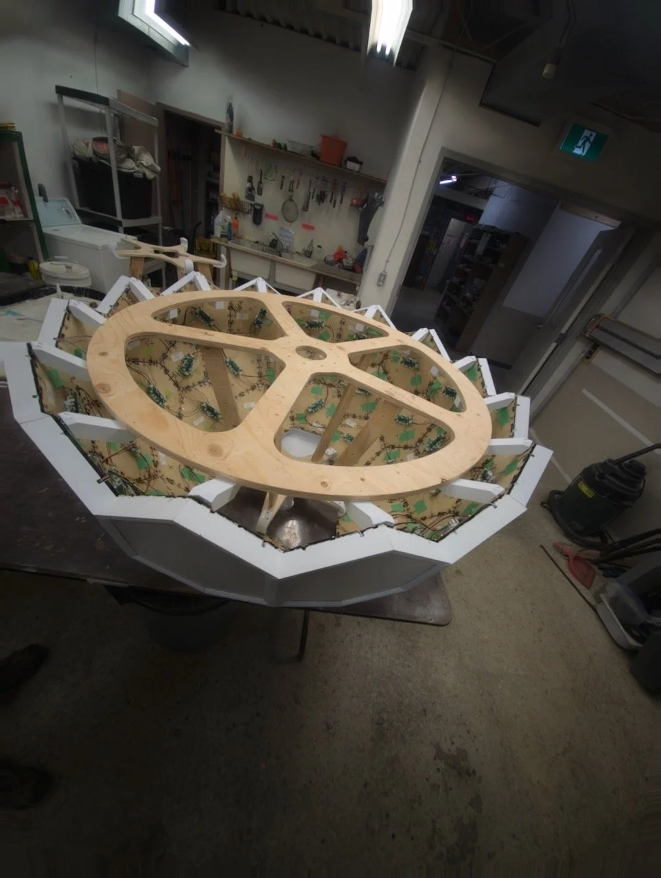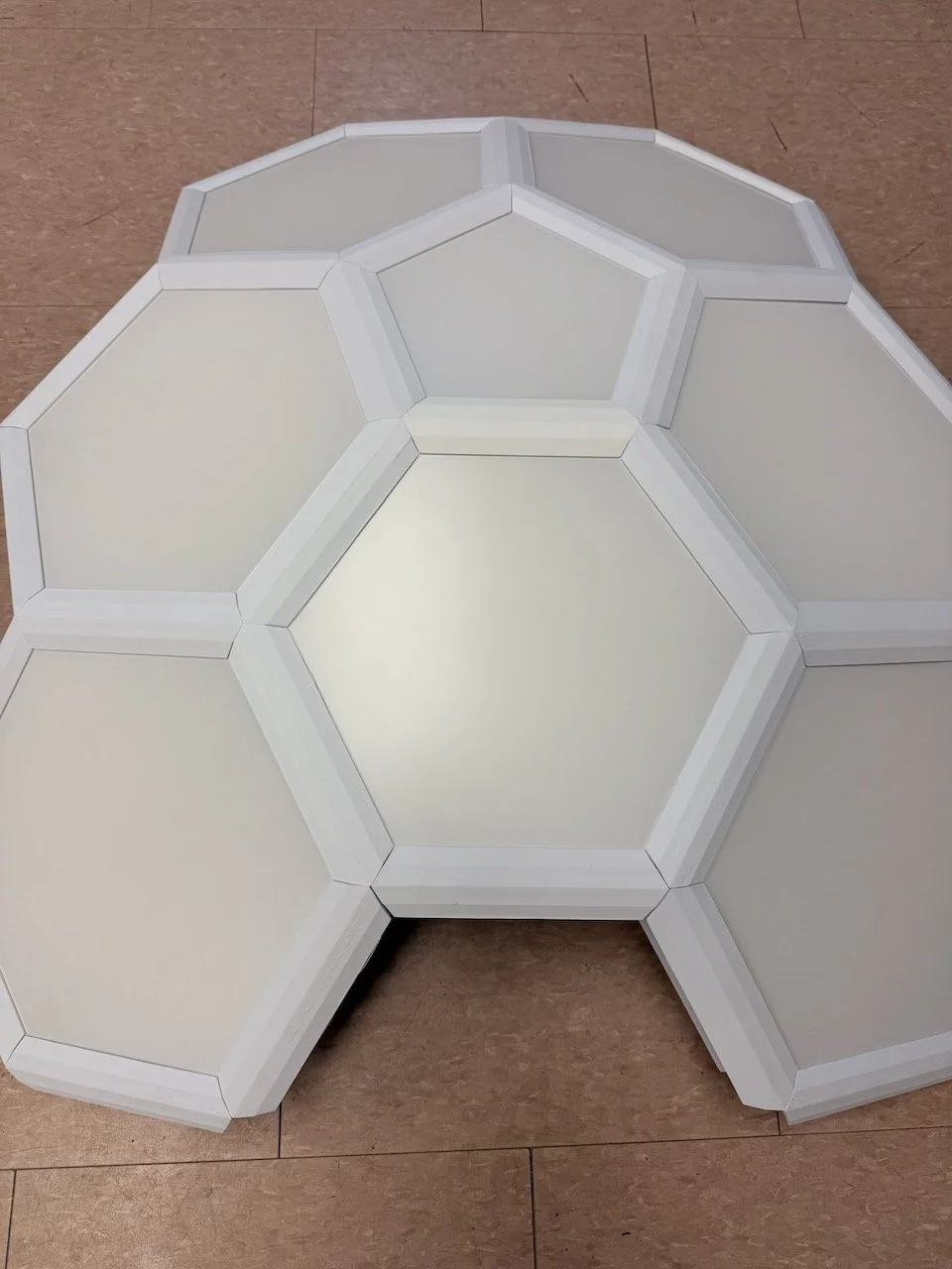 Here’s a short video of the moon under construction. We assemble the moon in panels of 8 cells. There are 10 total panels on the whole moon plus two additional panels on the top and bottom.