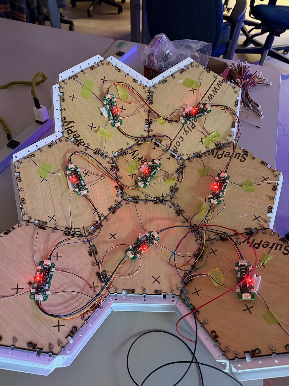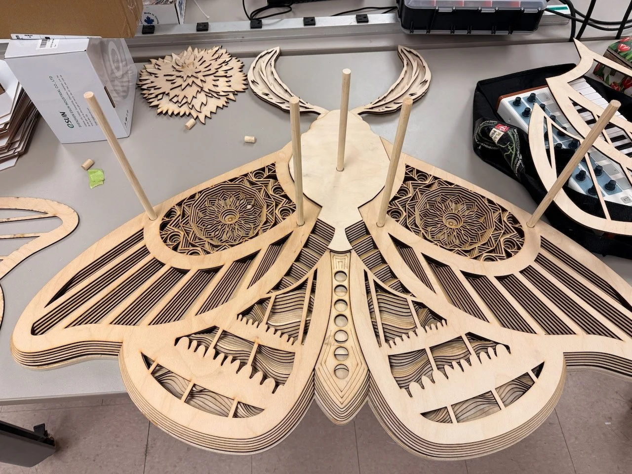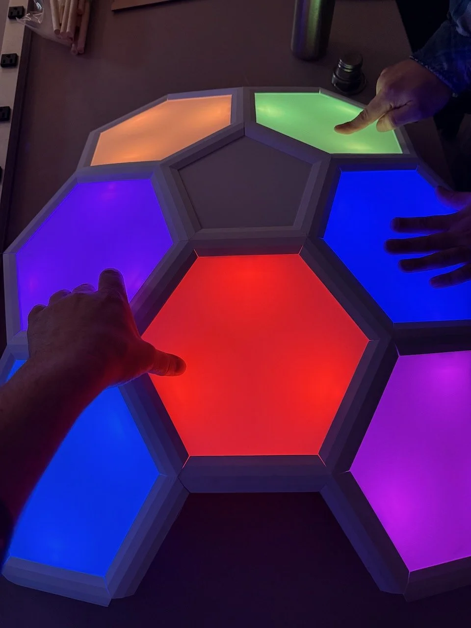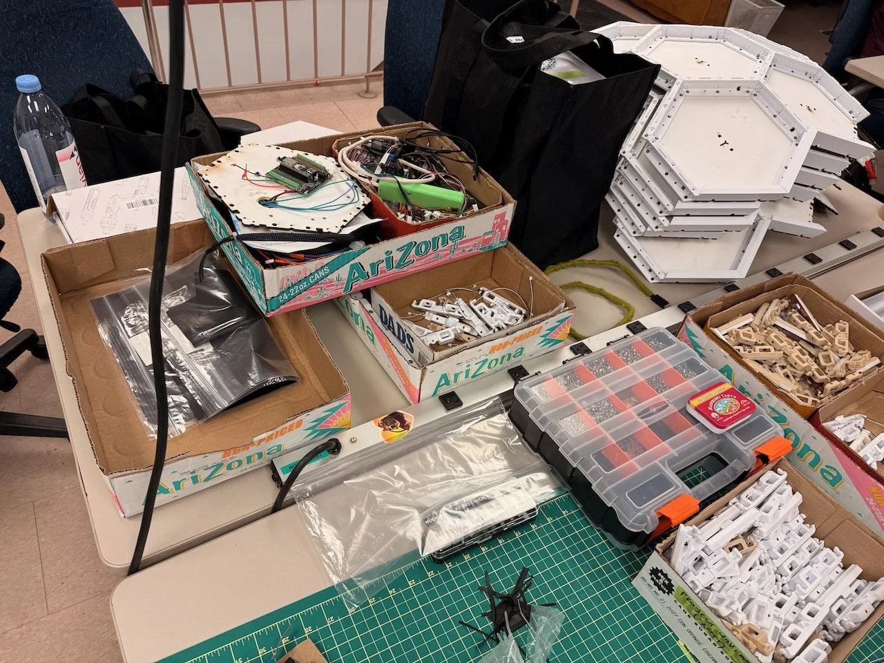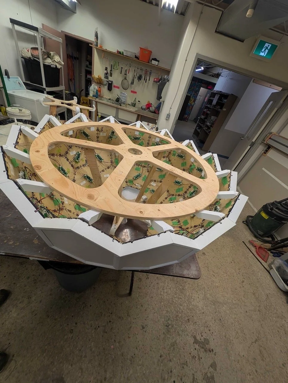 Here’s a short video of the moon under construction. We assemble the moon in panels of 8 cells. There are 10 total panels on the whole moon plus two additional panels on the top and bottom.