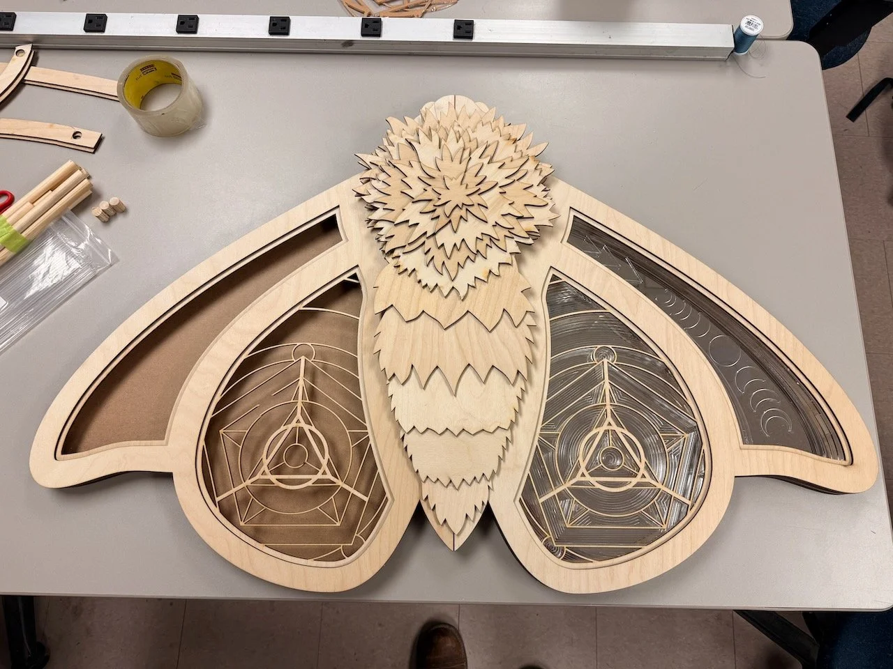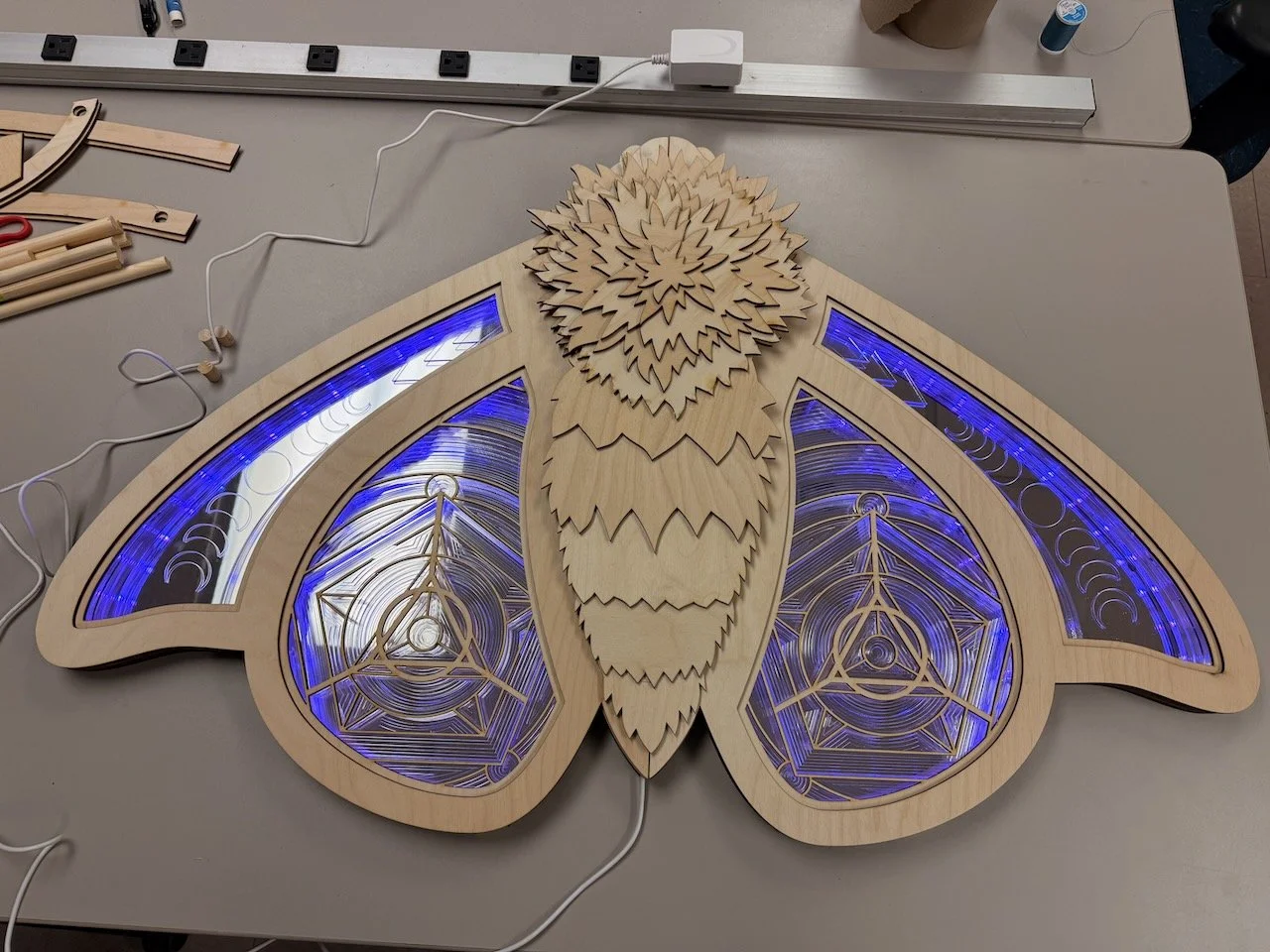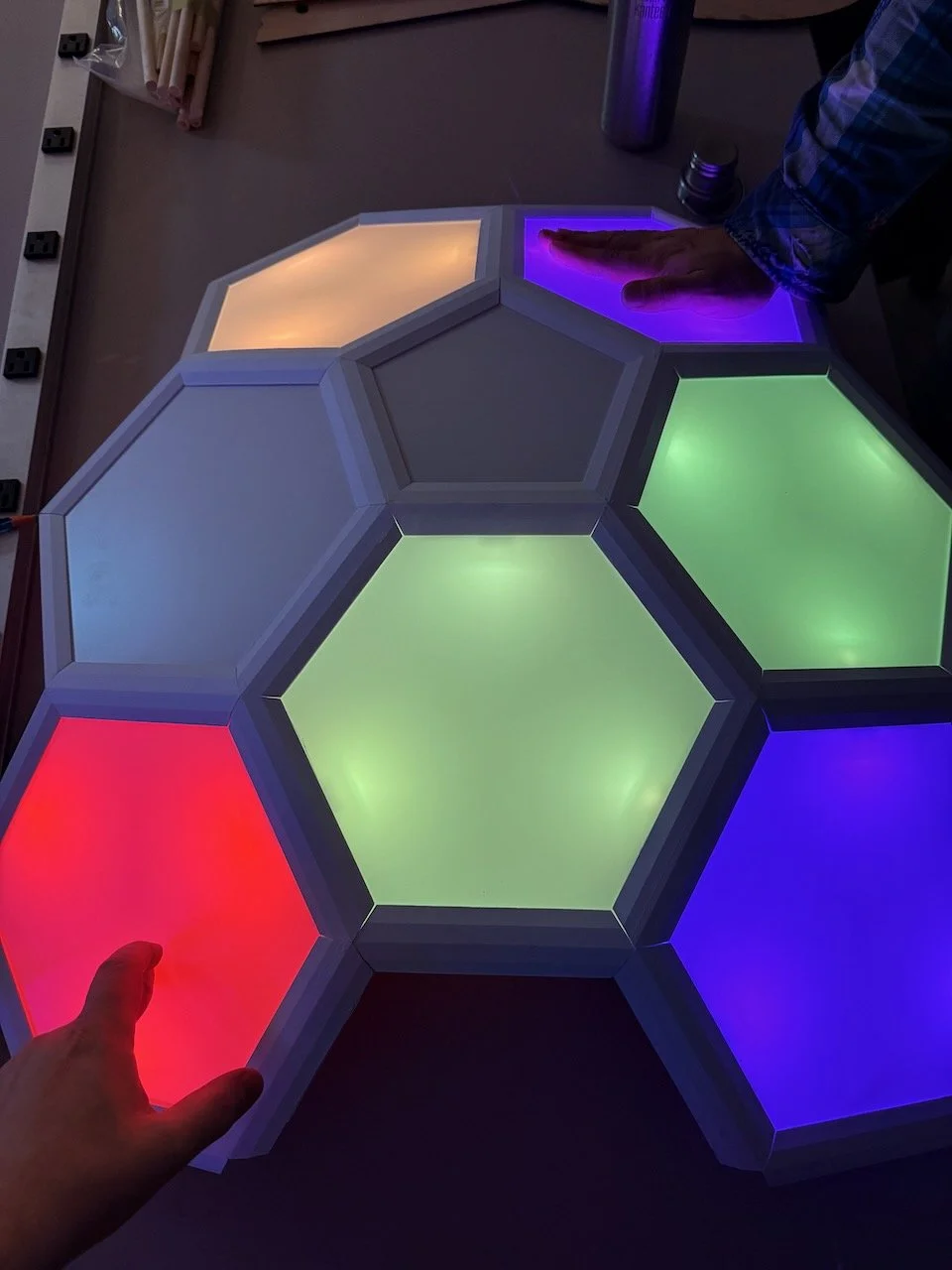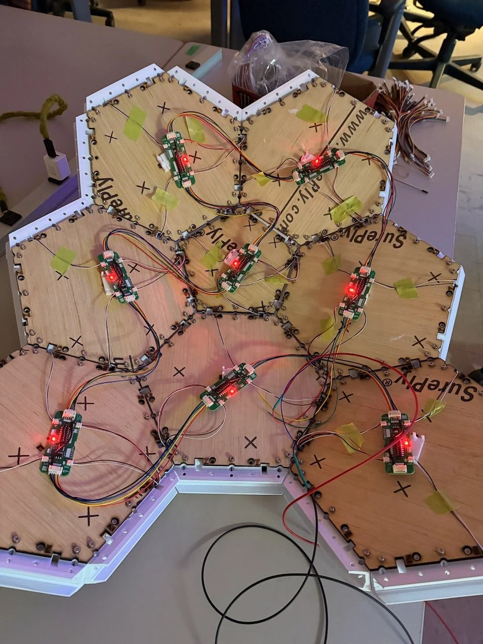 Here’s a short video of the moon under construction. We assemble the moon in panels of 8 cells. There are 10 total panels on the whole moon plus two additional panels on the top and bottom.