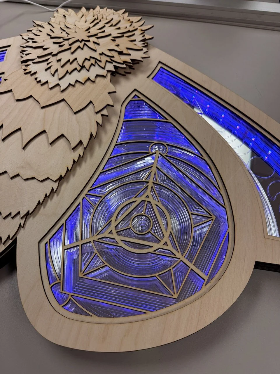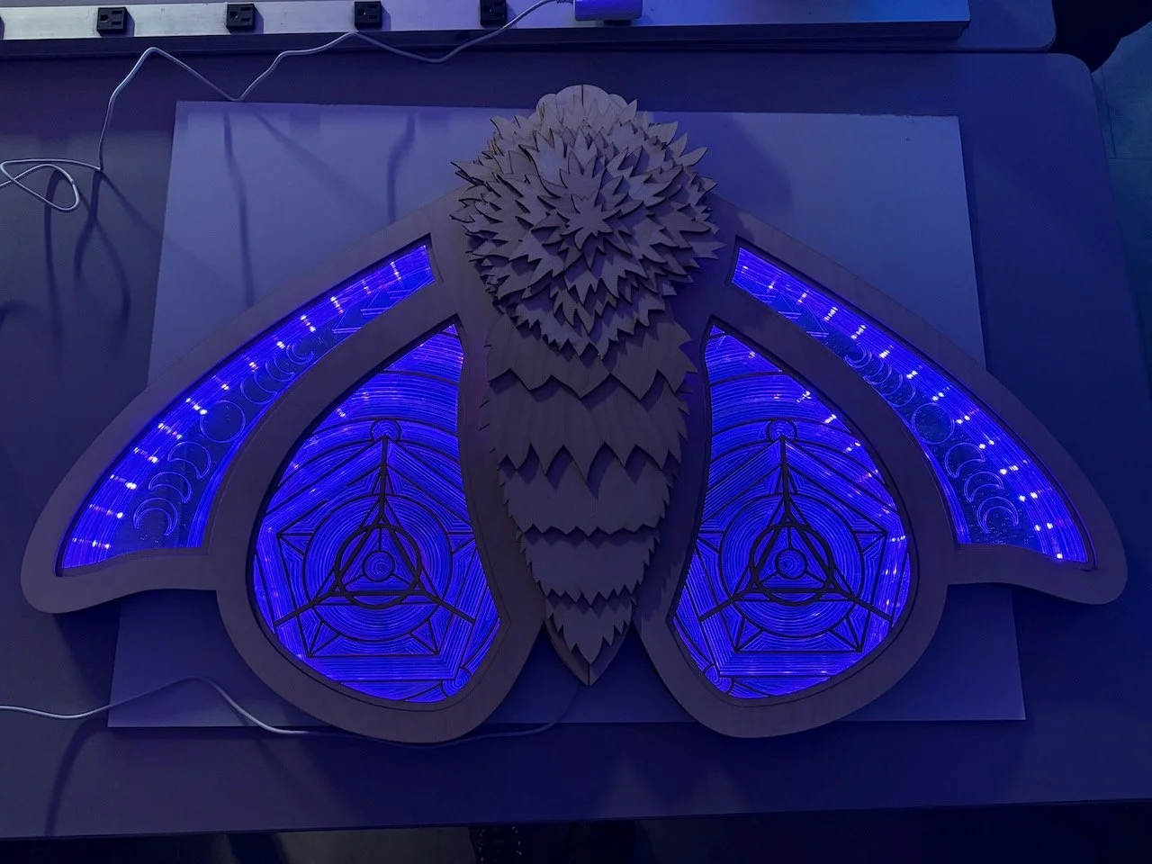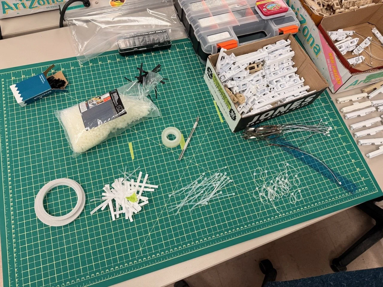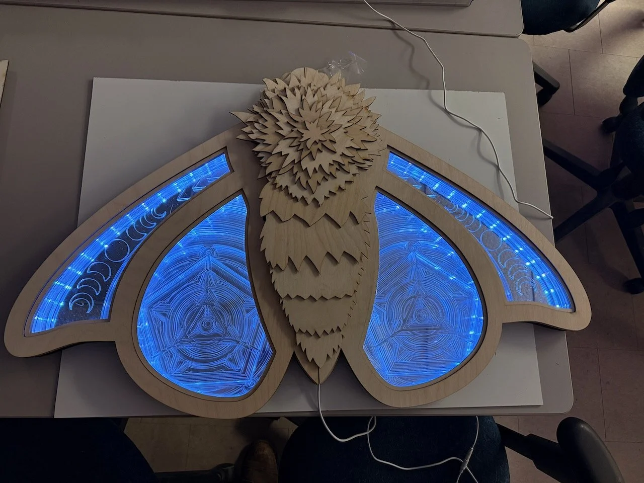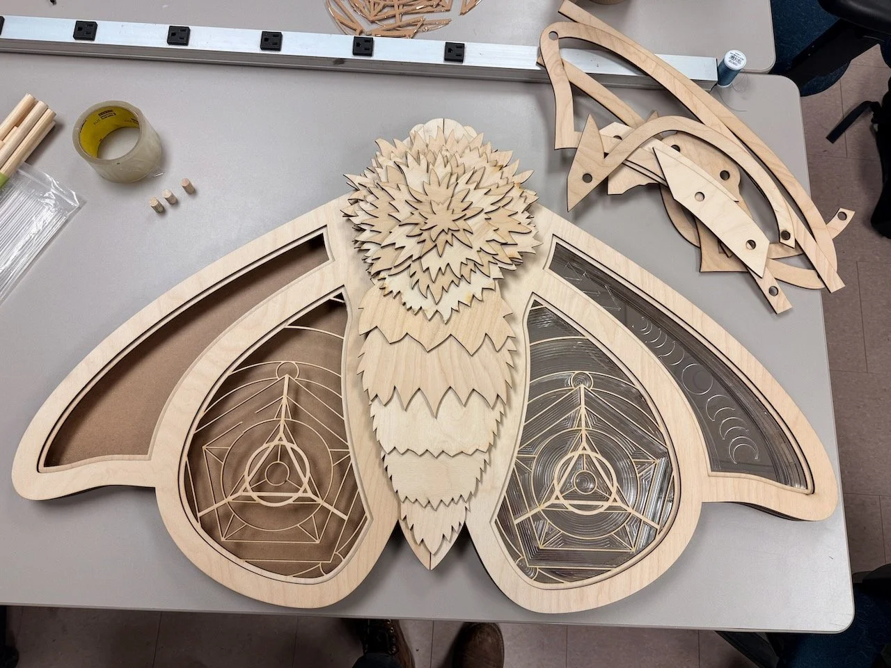 Here’s a short video of the moon under construction. We assemble the moon in panels of 8 cells. There are 10 total panels on the whole moon plus two additional panels on the top and bottom.